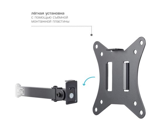 Имеет настольный тип установки с механизмом защиты от падения. Крепёжные отверстия настольного кронштейна ARM MEDIA LCD-T10 BLACK изготовлены по международному стандарту VESA.