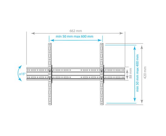 Поддержка крепления VESA 50×50, 75×75, 100×100, 200×100, 200×200, 200×300, 300×100, 300×200, 400×200, 300×300, 300×400, 400×300, 400×400, 500×400, 600×400