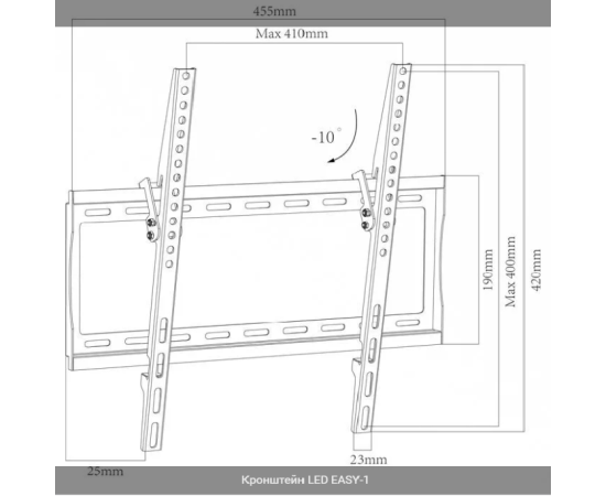 VESA: 200x100, 200x300, 200х200, 300x300, 400x200, макс. 400x400