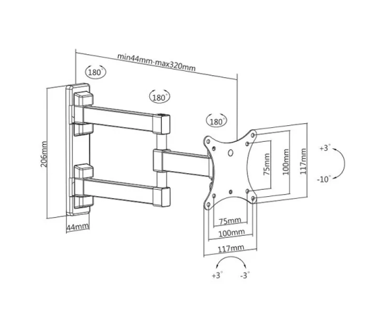 Настенный поворотно-наклонный кронштейн для телевизоров и мониторов с диагональю от 13 до 32 дюймов.