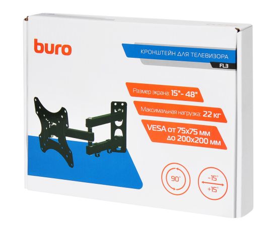 20"-48" Кронштейн Buro FL3S черный макс.15кг настенный поворотно-выдвижной и наклонный