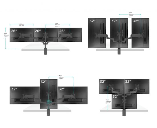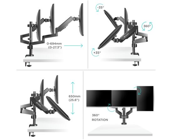 Расстояние от основания: 0-694 мм (0-27.3") портретная/альбомная ориентация экрана