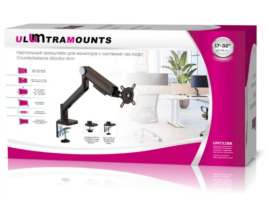 Кронштейн для мониторов Ultramounts UM 732BR черный 17"-32" макс.8кг настольный поворот и наклон