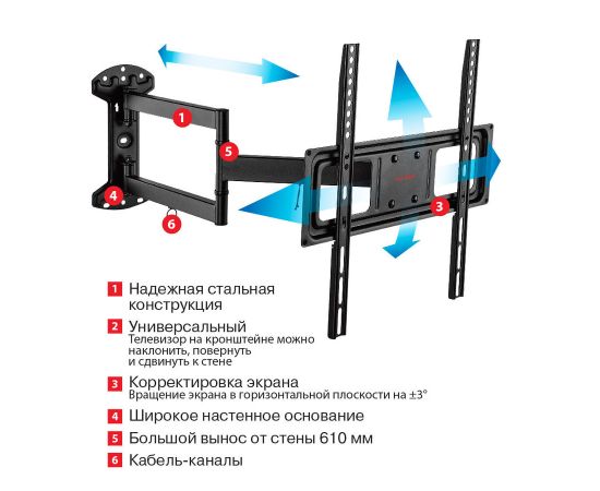 Кронштейн для телевизора Arm Media LCD-415 черный 24"-55" до35кг поворотно-выдвижной и наклонный