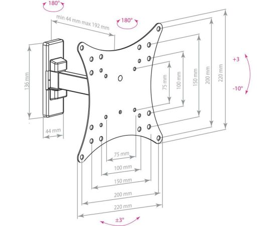 20"-43" Кронштейн Arm Media MARS-03 Наклонно-поворотный Черный макс.20кг