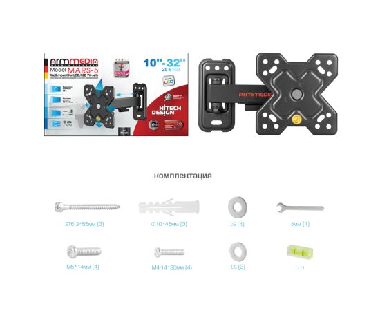10"-32" Кронштейн Arm media MARS-5 black, max 25 кг, max VESA 100x100 мм