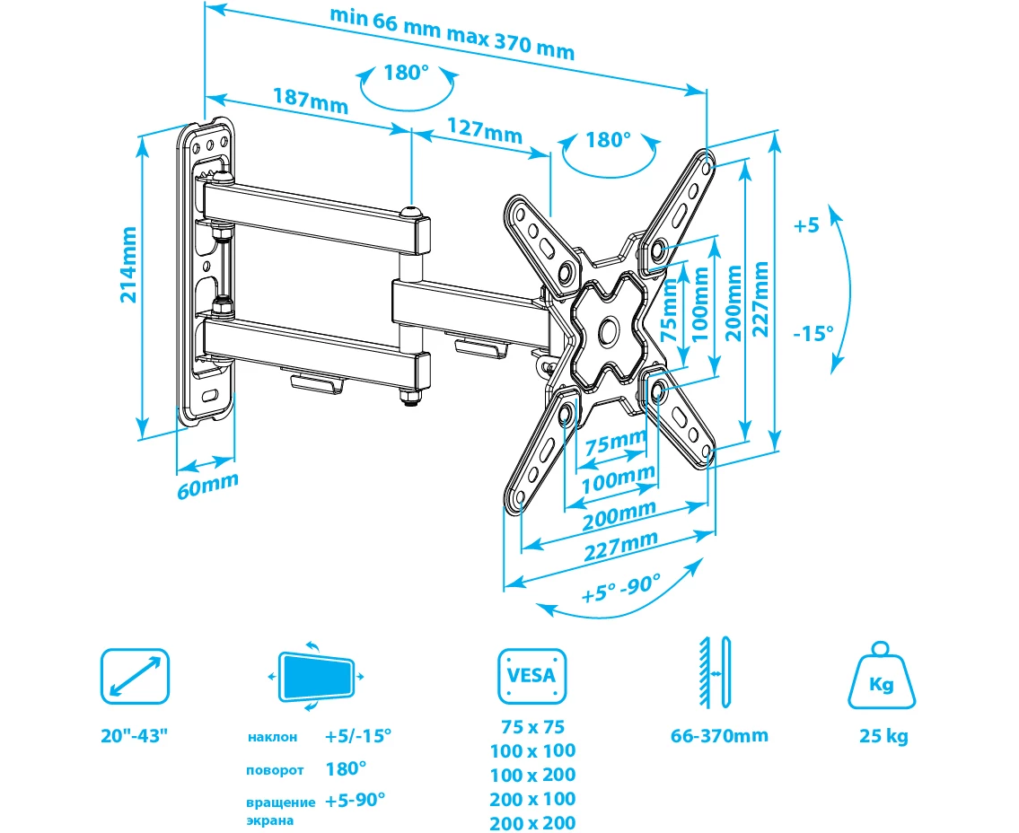Кронштейн для телевизора Arm Media Mars-8 черный