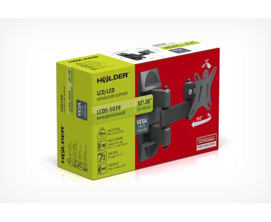 Кронштейн для телевизора Holder LCDS-5039 металлик 10"-26" до25кг поворот и наклон