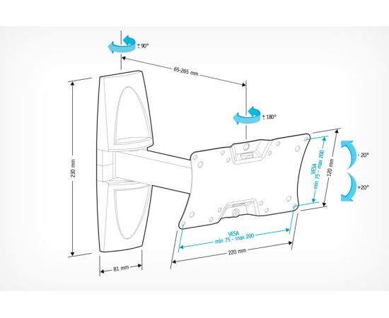 Поддержка крепления VESA 75×75, 100×100, 200×100
