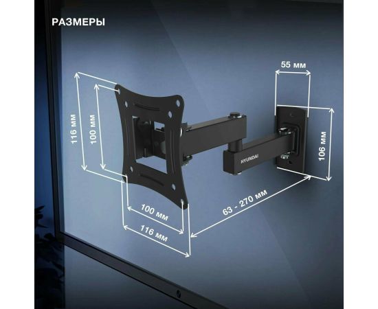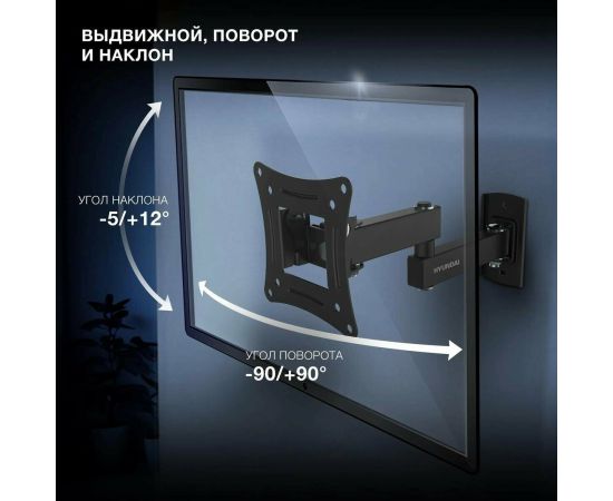 10"-27" Кронштейн Hyundai GL-N1 черный макс.15кг настенный поворотно-выдвижной и наклонный