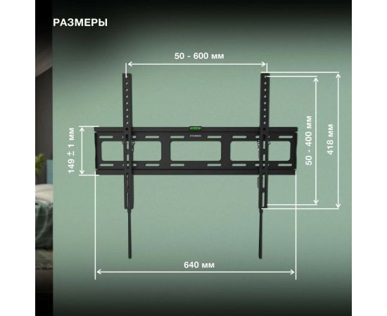 Стандарт Vesa: 200х200 мм, 200х300 мм, 300х200 мм, 400х200 мм, 300х300 мм, 300х400 мм, 400х300 мм, 500х400 мм, 400х400 мм, 600х400 мм