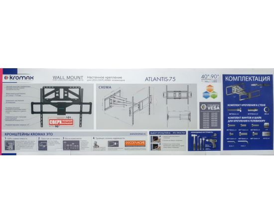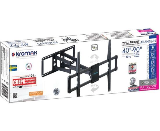 Кронштейн для телевизора Kromax ATLANTIS-75 черный 40"-90" до101кг поворотно-выдвижной и наклонный