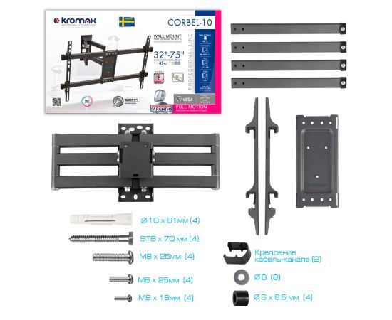 Кронштейн для телевизора, комплект крепежа для установки ТВ, подробная инструкция на русском языке