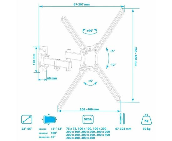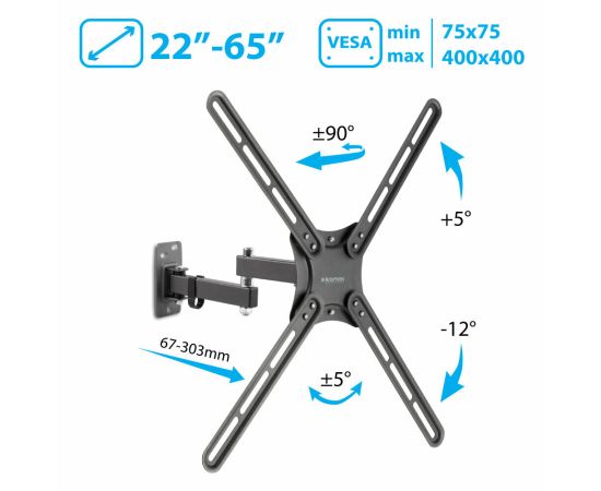 Кронштейн Kromax CORBEL-7 black, 8 шт/уп. Кр. стал. наст. для TV 22"-65", max 30 кг, 5 ст св., нак. +5°-12°,