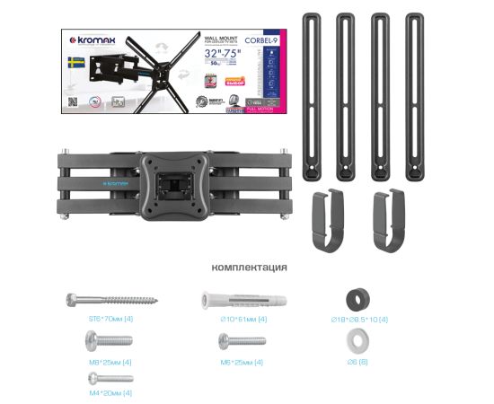 Кронштейн для телевизора, комплект крепежа для установки ТВ, подробная инструкция на русском языке