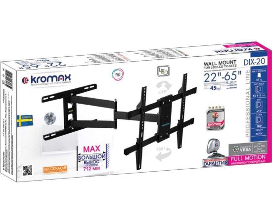 22"-65" Кронштейн Kromax DIX-20 Наклонно-поворотный черный до45кг