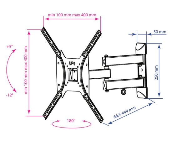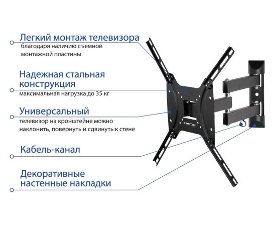 Кронштейн для телевизора Kromax DIX-24 черный 15"-55" до35кг поворотно-выдвижной и наклонный