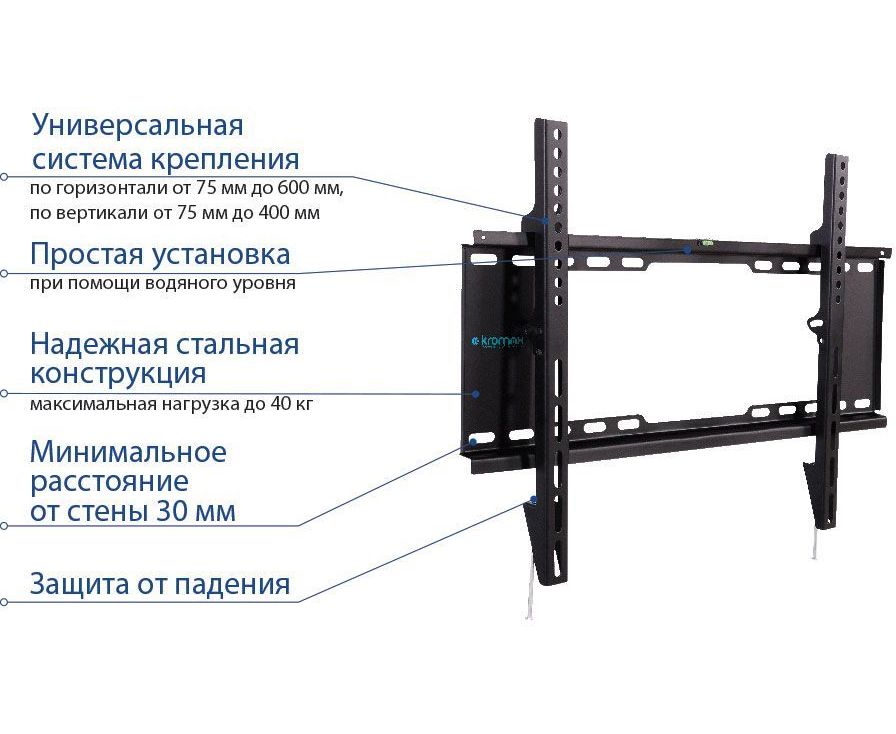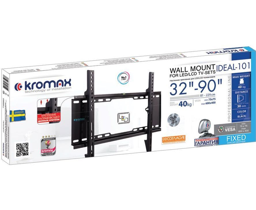 32"-90" Кронштейн Kromax IDEAL-101 Фиксированный Чёрный Нагрузка до 40кг