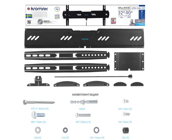 Кронштейн для ТВ KROMAX Ultra Slim-100 black