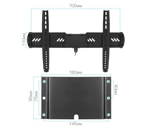 Кронштейн для телевизора, комплект ключей и крепежа для установки ТВ, навесной уровень, подробная инструкция на русском языке