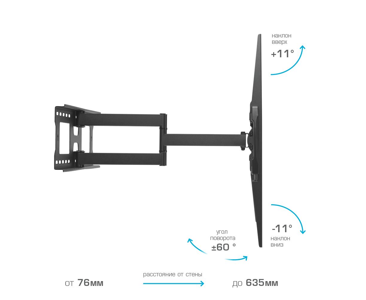 Кронштейн для ТВ TUAREX Olimp-607 black max VESA 800x600мм, настенный, max 100кг