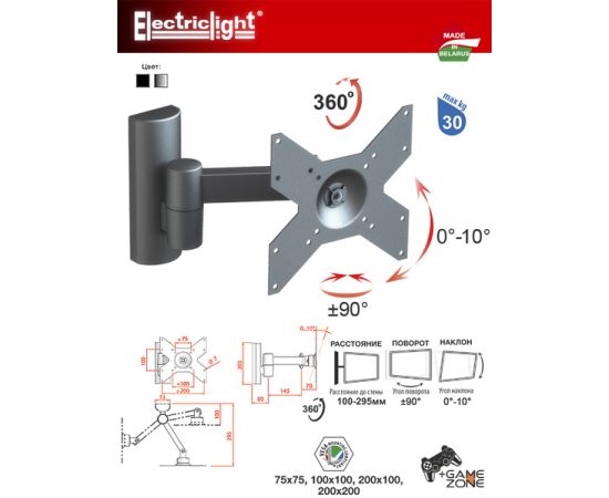 VESA 75х75; VESA 100х100; VESA 200х100; VESA 200х200