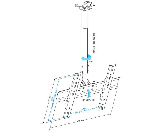 32"-65" Кронштейн Holder PR-101-B Фиксированный черный макс.60кг потолочный