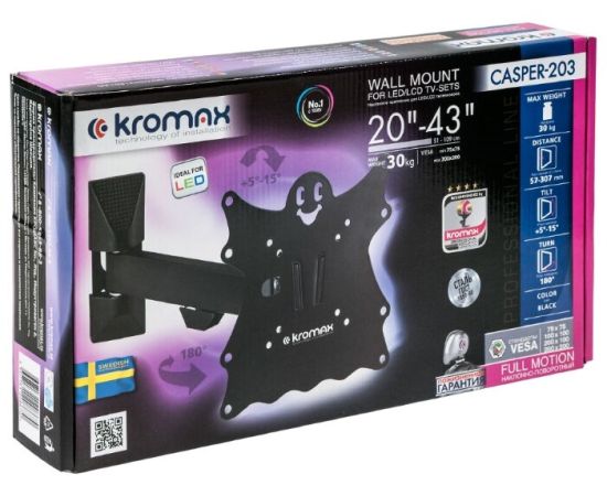 15"-40" Кронштейн Kromax Casper-203 Наклонно-поворотный Черный макс.30кг