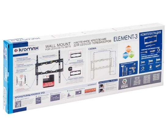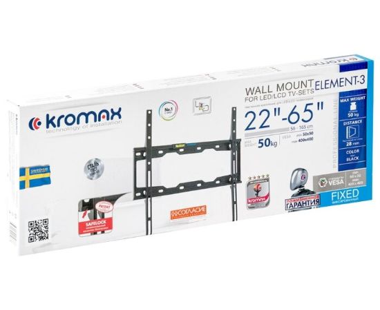22"-65" Кронштейн Kromax ELEMENT-3 Фиксированный Чёрный Нагрузка до 50кг