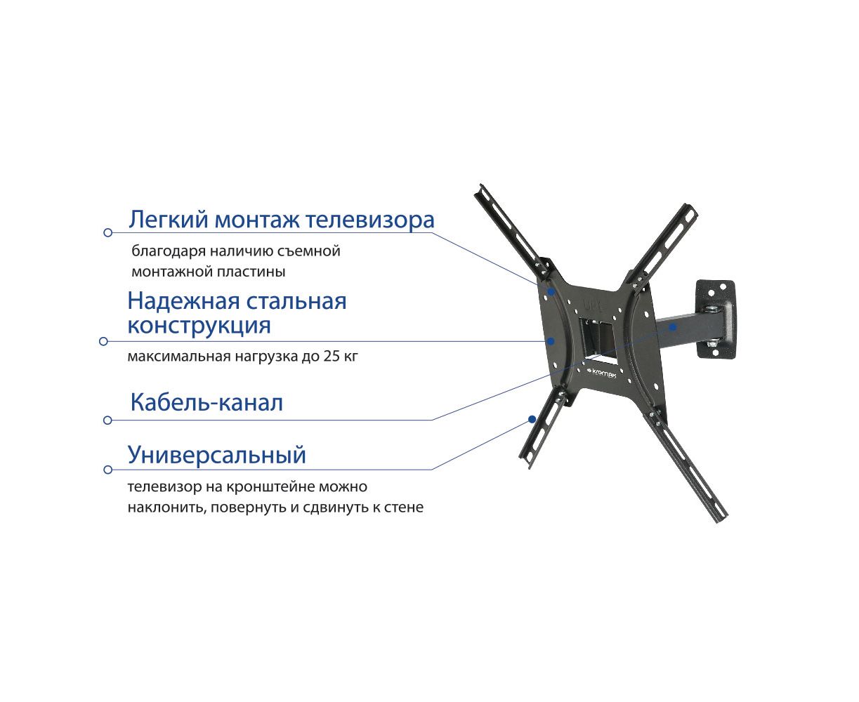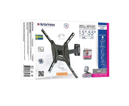 15"-55" Кронштейн Kromax OPTIMA-403 Наклонно-поворотный черный макс.25кг