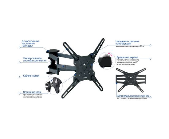 Поддержка крепления VESA 75×75, 100×100, 200×100, 200×200, 200×300, 300×200, 400×200, 300×300, 400×300, 400×400