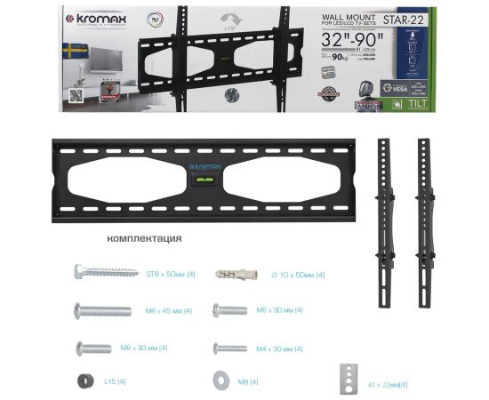 Стандарт Vesa: 100x100 мм, 200x100 мм, 200x200 мм, 200x300 мм, 200x400 мм, 300x300 мм, 400x300 мм, 400x400 мм, 600x400 мм, 75x75 мм