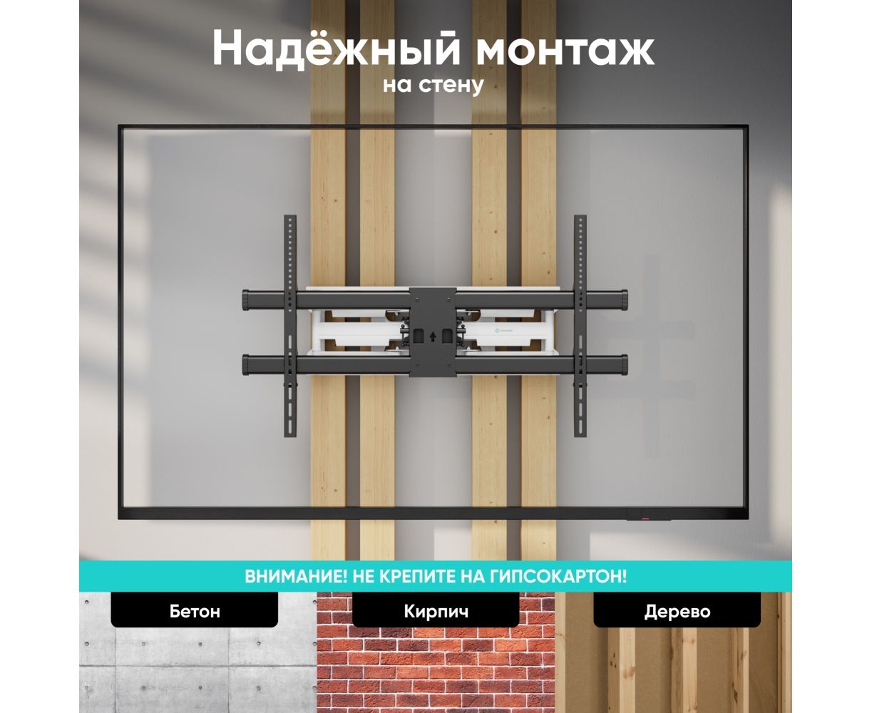 Кронштейн ONKRON M10-BW чёрно-белый Для экранов с диагональю 42"-120" наклонно-поворотный, макс. нагрузка 100кг