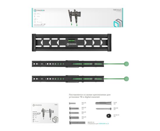 32"-55'' Кронштейн ONKRON TM5 Наклонный, черный, макс 400*400 наклон 12º от стены: 35-145мм, макс вес 36,4кг, встр уровень