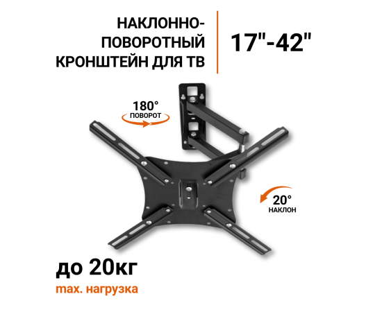 Этот кронштейн подходит для экранов с диагональю от 17 до 42 дюймов и способен выдерживать максимальную нагрузку до 20 кг.