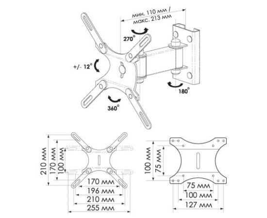Стандарт Vesa: 100x100, 200x100, 200x200, 100x200, 75x75