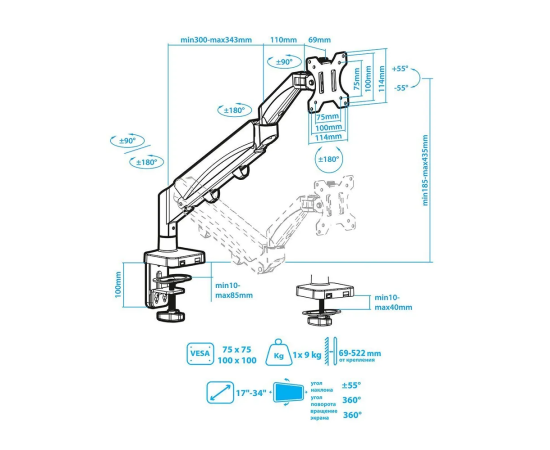 Настольный кронштейн для мониторов, комплект ключей и крепежа для установки, подробная инструкция на русском языке