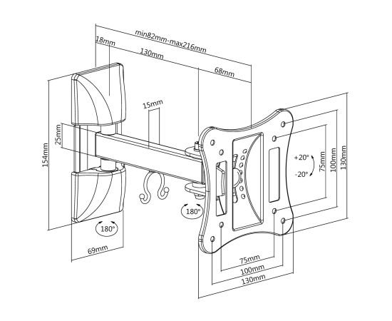 13"-27" Кронштейн Ultramounts UM 891 черный макс.15кг настенный поворотно-выдвижной и наклонный