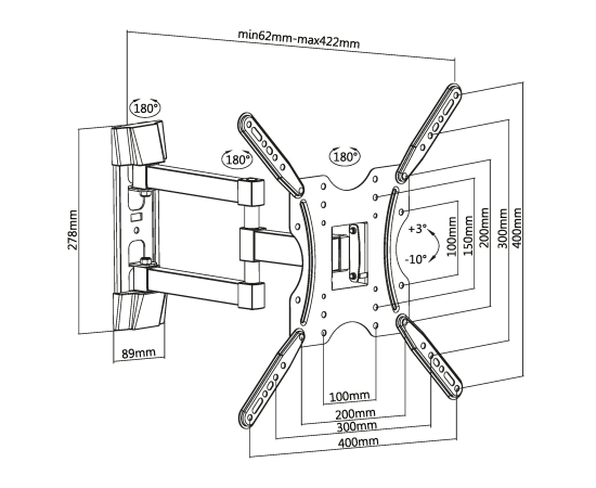 Расстояние от стены: 62~422 мм