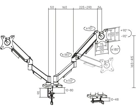 Кронштейн для мониторов Ultramounts UM740 черный 17"-32" макс.9кг крепление к столешнице поворот и наклон