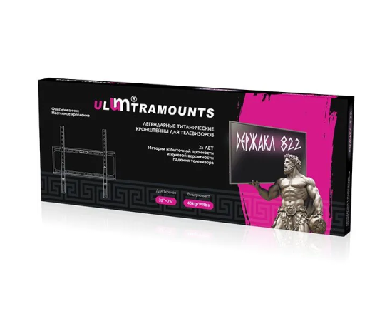 Ультратонкое настенное крепление Ultramounts UM822 для дисплея диагональю от 32 до 75 дюймов, расстояние от стены: 22 мм. Материал: сталь, максимальная нагрузка: 45 кг.