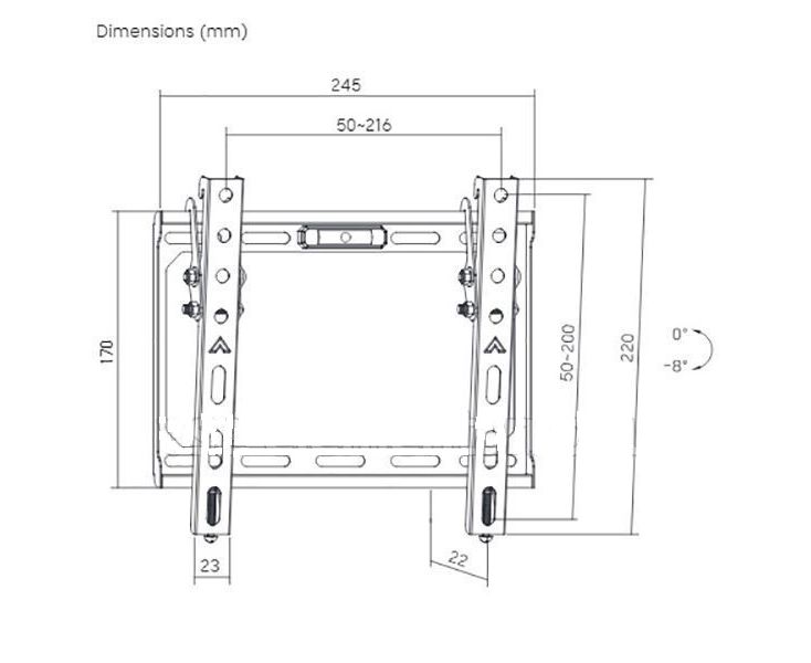 -8° (вниз) / +0° (вверх)