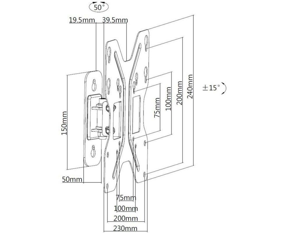 Размер VESA 75x75, 100x100, 200x100, 200x200