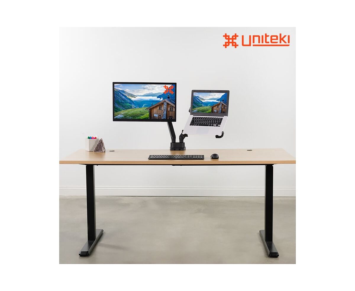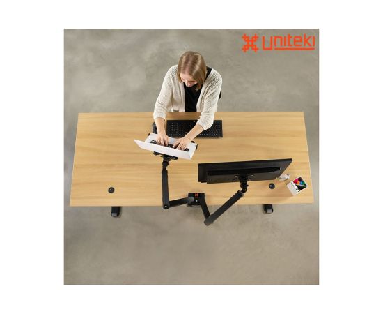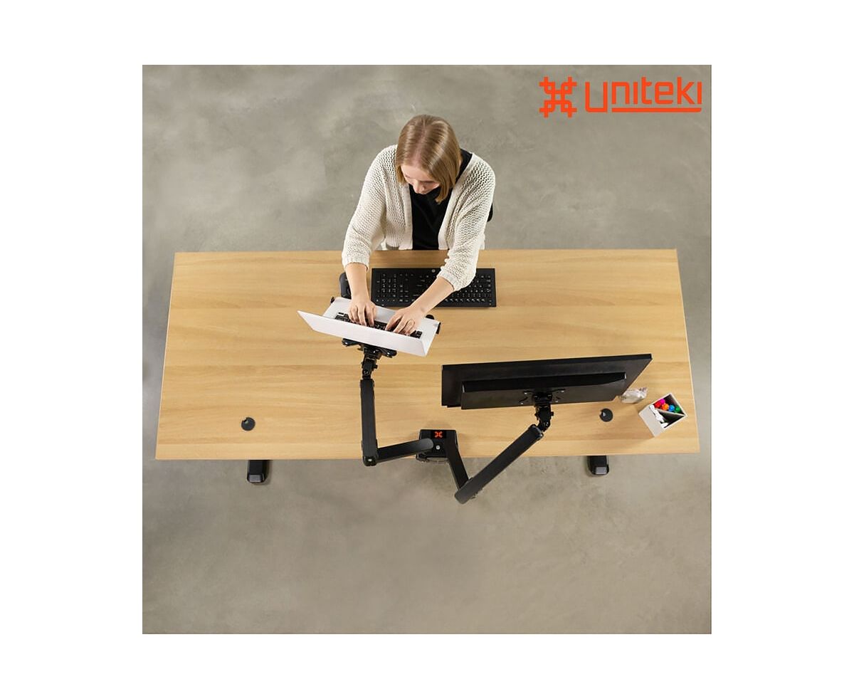 На одном кронштейне UNITEKI с помощью DMN05B может быть установлено от 1 до 2 ноутбуков или планшетов, что существенно облегчает работу в режиме многозадачности и одновременно успешно решает вопрос эргономики рабочего места.