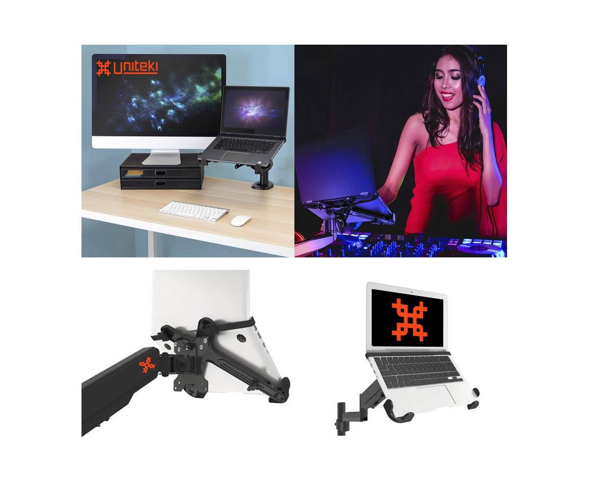 UniTeki-кронштейны-крепления-подставки DMN05B для ноутбука и планшета помогут разместить Ваше устройство максимально комфортно и станут его незаменимыми помощниками на рабочем месте.