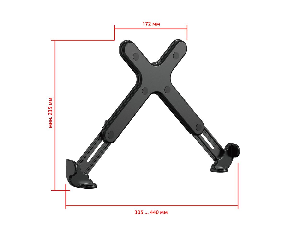 Специальные фиксаторы позволяют настраивать крепление под разные размеры ноутбуков, электронных книг, планшетов и надежно их закреплять специальным зажимом.