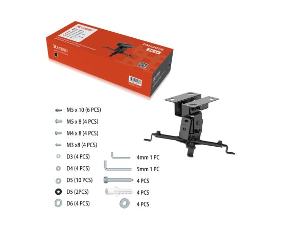 Кронштейн поставляется в оригинальной упаковке, с подробной инструкцией и широким набором креплений для потолочной инсталляции.