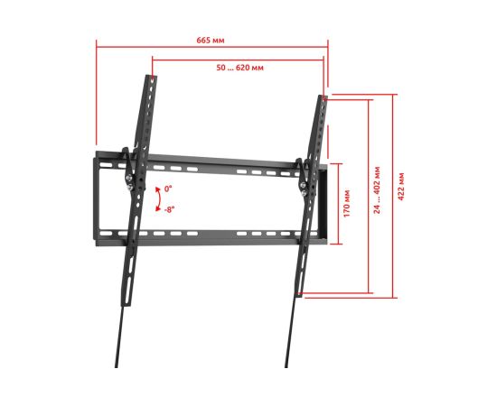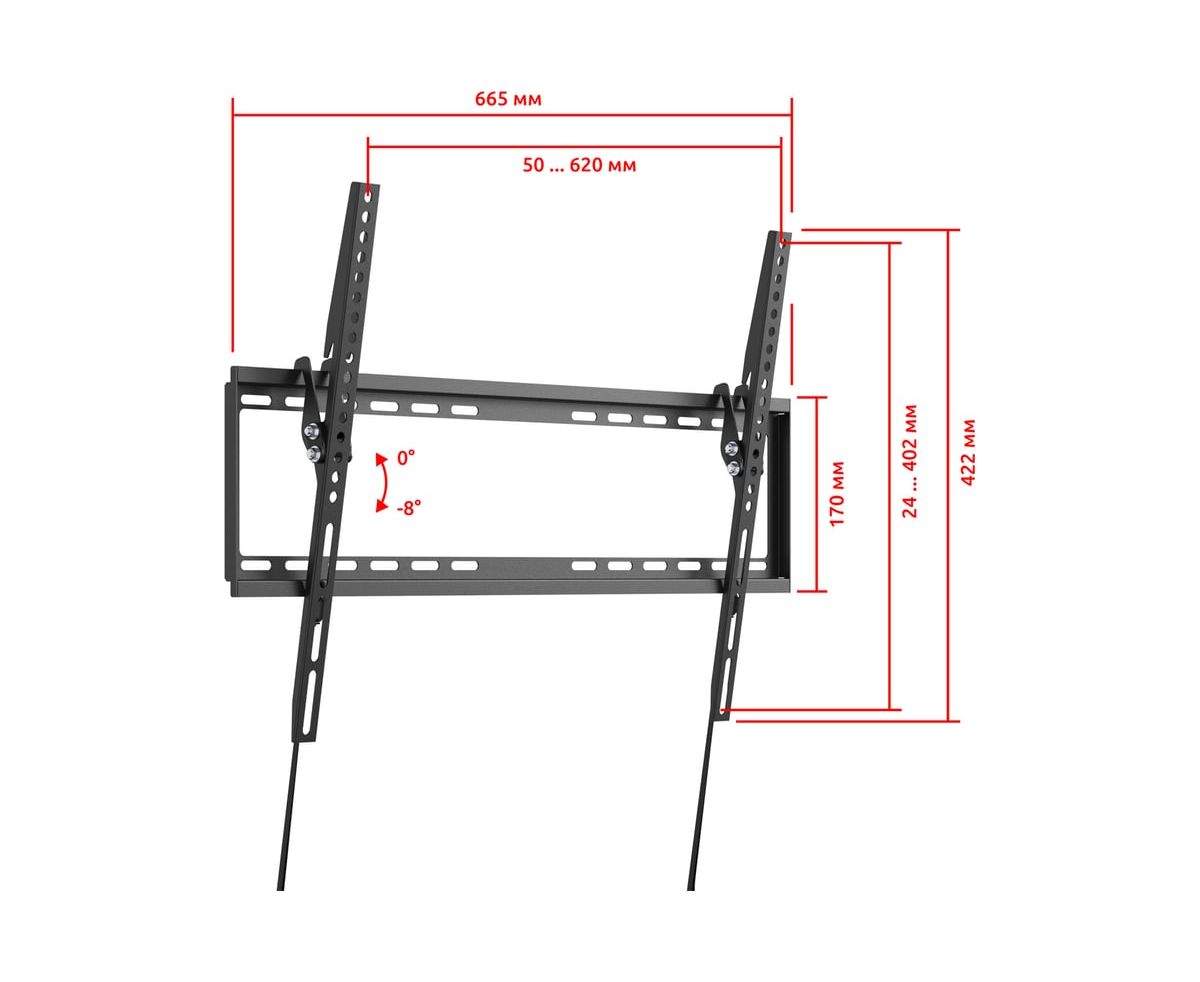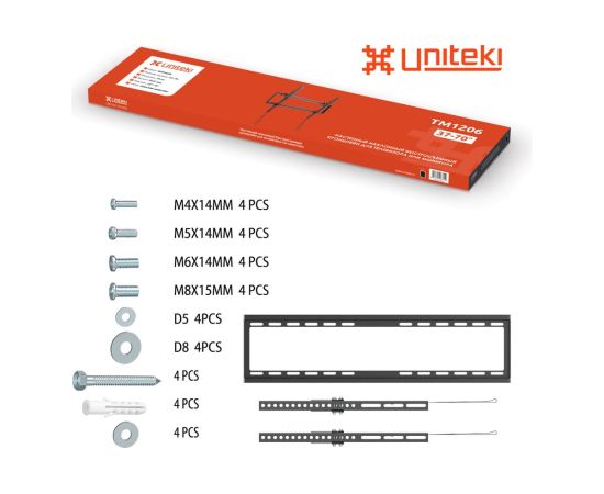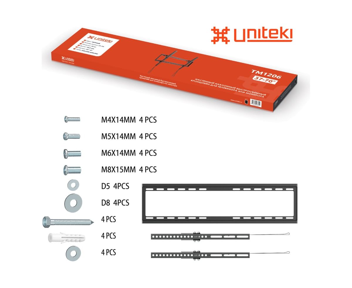 Настенный наклонный кронштейн UNITEKITM1206 в черном цвете предназначен для телевизоров с диагональю от 37 до 70 дюймов (93 - 177 см.).