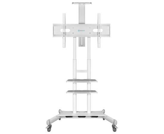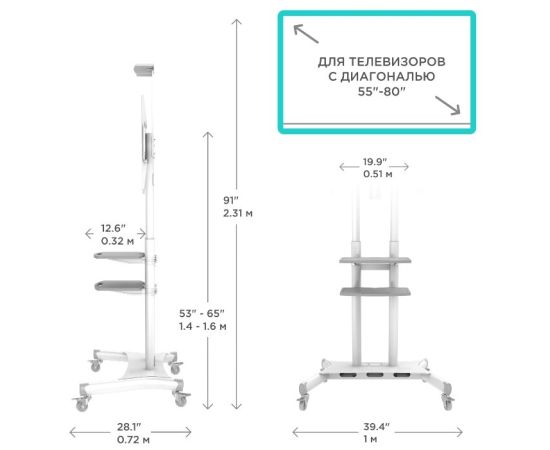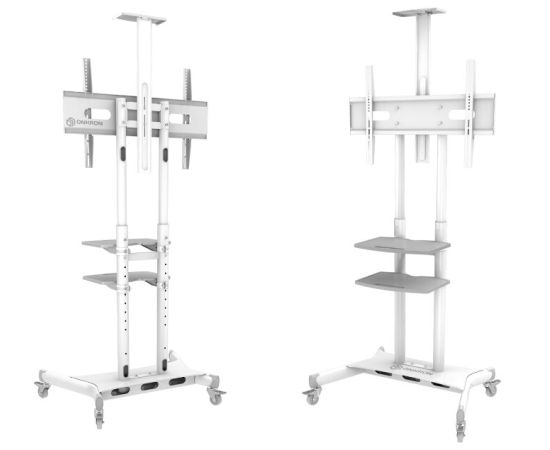 Отличная стойка за свои деньги. Конструкция надежная и оснащена всеми удобствами для эксплуатации. Используем стойку в офисе для большего удобства проведения конференций. Есть возможность регулировки по высоте, что нам частенько помогает, еще очень удобно, что полочки есть.