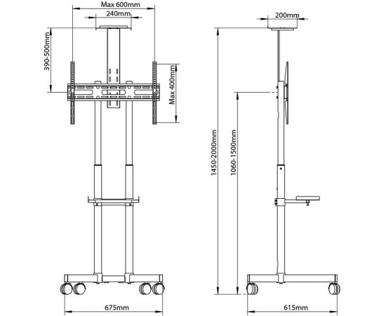 Поддержка крепления VESA 200×200, 200×300, 300×200, 400×200, 300×300, 300×400, 400×300, 400×400, 600×400